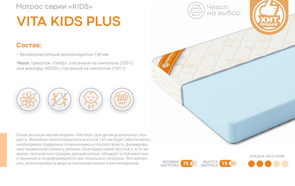 | Тип матраса | Детский |