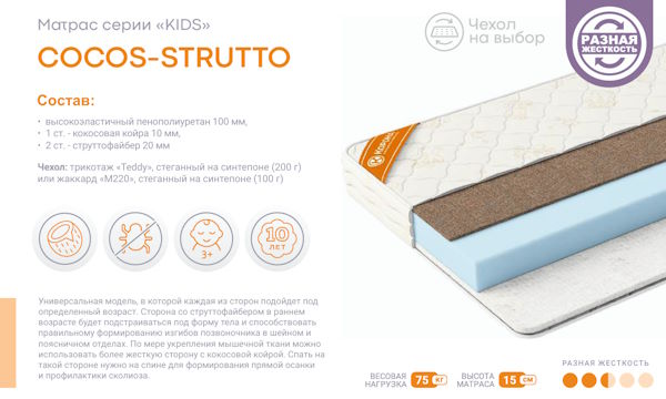 | Наполнитель матраса | струттофайбер/кокосовая койра/ппу |