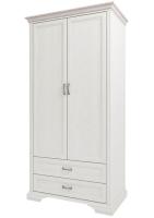Корпус двустворчатого шкафа Monako 2DG2S изготовлен из ЛДСП толщиной 16 мм, фасады имеют рамочную конструкцию и украшены филенками. При производстве карниза использован МДФ 22 мм и техника кракелюр (искусственное состаривание). Фасады оформлены в цвете сосна винтаж и дуб анкона, их дополняют элегантные ручки-скобы под хром.