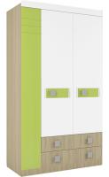 Шкаф 3-х створчатый №25 "Стиль" имеет отделение для хранения одежды, комплектующееся полкой и штангой, секцию для белья с полками и два вместительных выдвижных ящика в нижней части шкафа. Фасады декорированы цветными вставками и фрезеровкой.