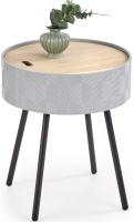Aura – оригинальный журнальный столик польской компании Halmar  с круглой столешницей из лакированого МДФ и цельного масива дерева. Прочные ножки сделаны из стали.