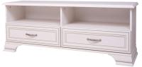 Низкая и длинная тумба Tiffany RTV изготовлена на белорусском заводе Anrex из экологически безопасного материала категории Е1 ЛДСП и МДФ. Она имеет отделку, присущую классическому стилю (филенки, элементы состаренности, светлые фасады, резные ножки). За закрытыми отделениями этой мебели можно хранить мелкие вещи, там они будут надежно защищены от света и пыли.
